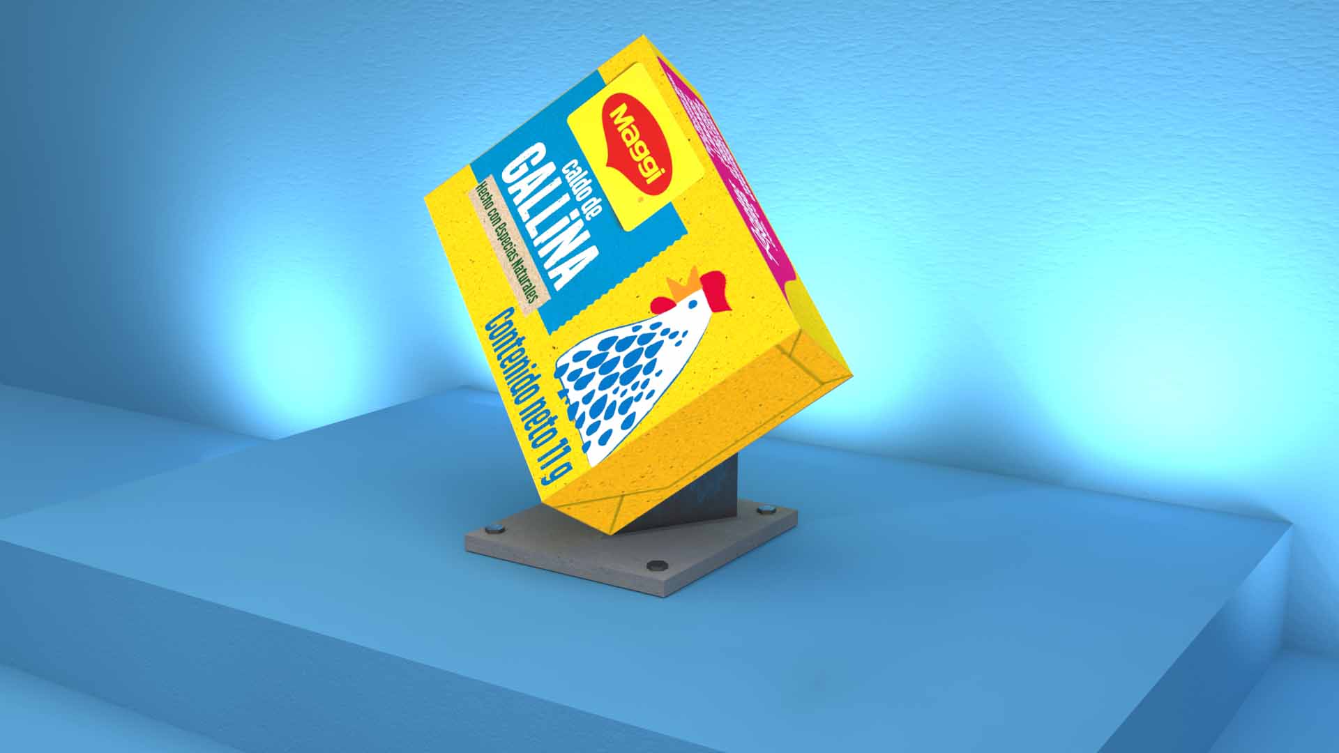 Creamos un imponente dummy a gran escala del icónico cubo Maggi, diseñado para y dominar visualmente el espacio urbano. Lo acompañamos con una escultura de la emblemática gallina, a las calles el carácter y la de la marca.
